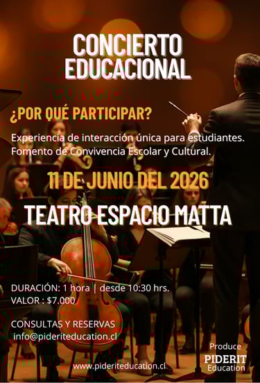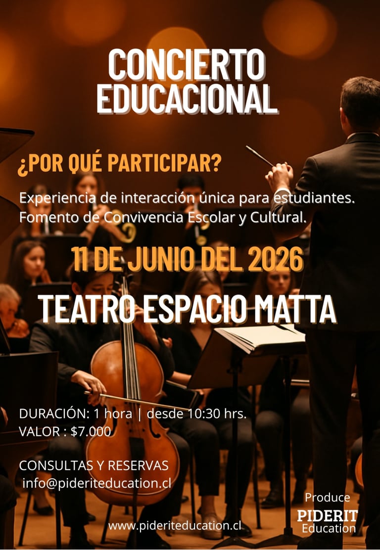 Con esta visión, surge Piderit Education, una iniciativa que busca acercar el arte a los estudiantes de manera lúdica, clave en su etapa formativa. La propuesta no se limita a la música como expresión artística, sino que entiende los conciertos educacionales como experiencias participativas, donde los estudiantes no solo escuchan, sino que también se integran en lo que se está presentando. Esto permite generar aprendizajes que trascienden lo musical, incorporando objetivos actitudinales y formativos establecidos en los planes y programas de la asignatura de música del Ministerio de Educación.